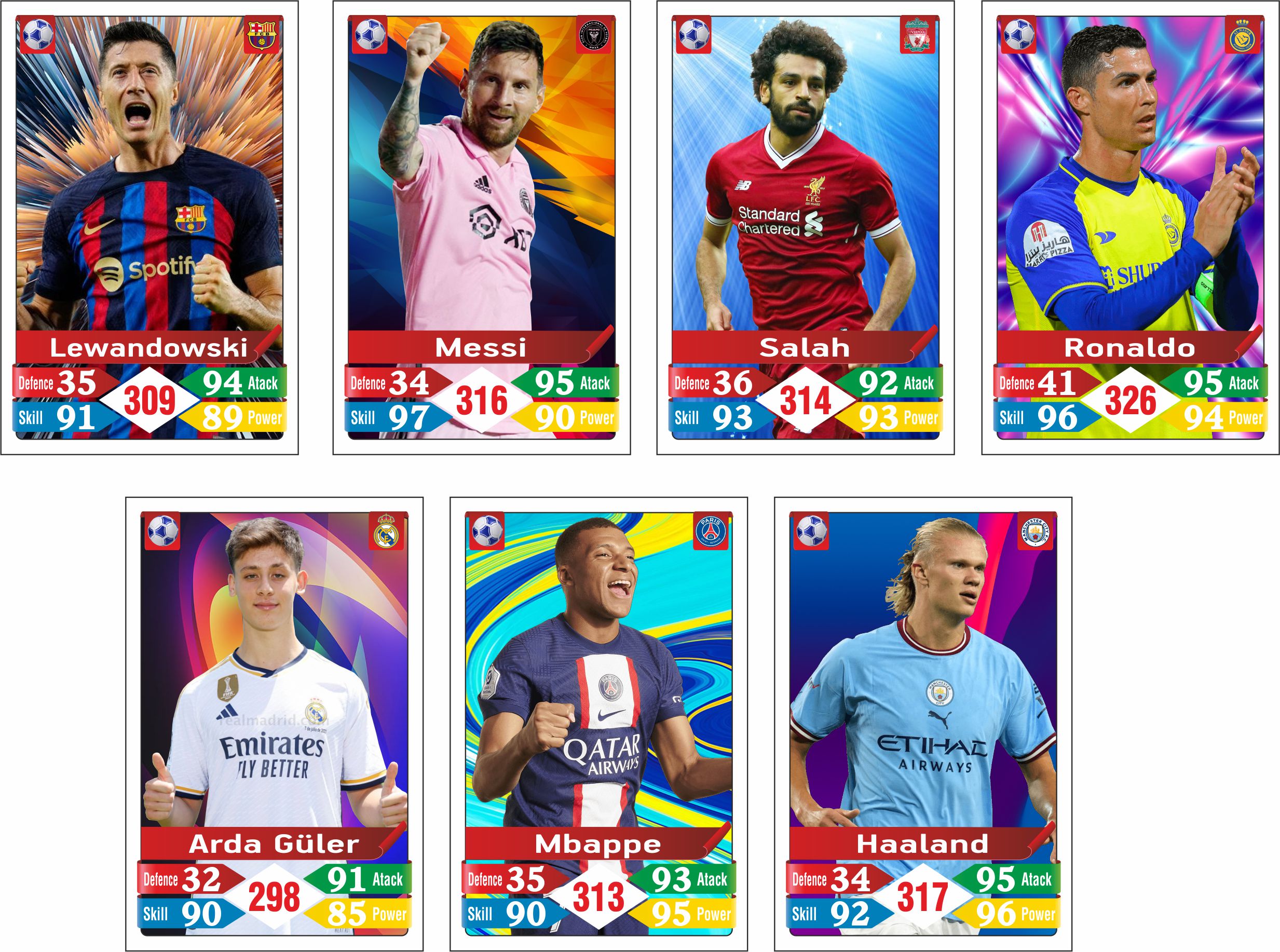 Oyun kartları olarak; ünlü futbolcular, çi̇zgi̇ fi̇lm kahramanları, si̇nema arti̇st ve aktörleri̇, smackdown güreşçi̇leri̇ ve ünlü şarkıcılar yer almaktadır. Ülke parası olarak usd, euro, manat,di̇nar vb. Paralar kullanılmaktadır. Her müşteri̇ kendi̇ ülke parasını ürün i̇çi̇nde i̇steyebi̇li̇r.